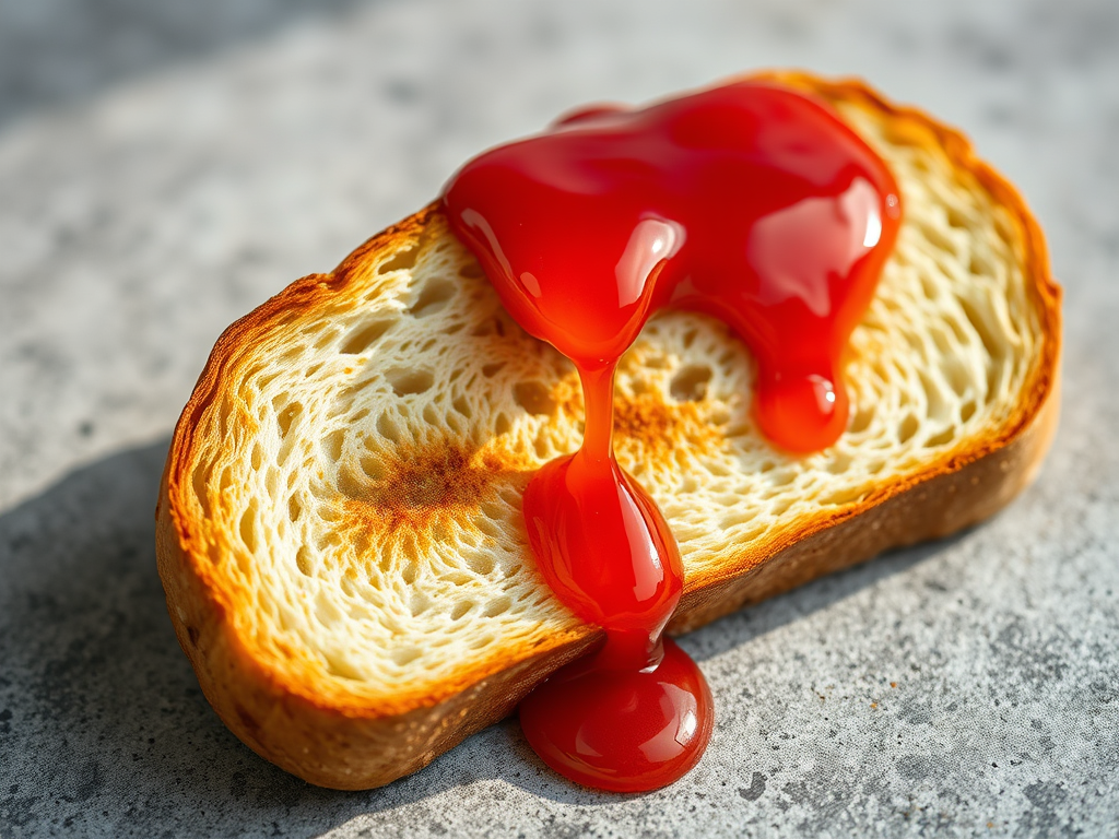 Mi tostada sale despedida de las manos, hace una pirueta doble en el aire de la cocina, se estampa contra la pared y se desliza lentamente por las baldosas, dejando a su paso un rastro pegajoso de confitura de arándanos.